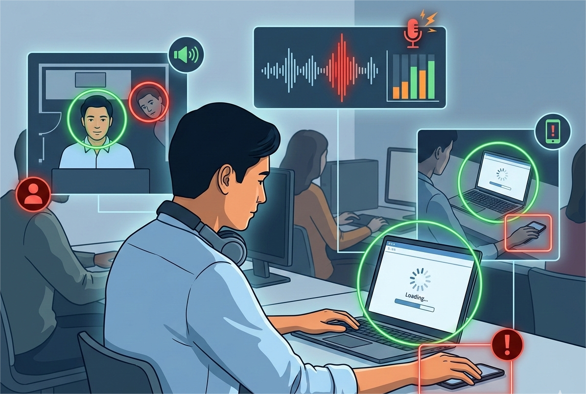 Detect multiple faces, unusual noise levels, and electronic device usage to maintain a secure testing environment.